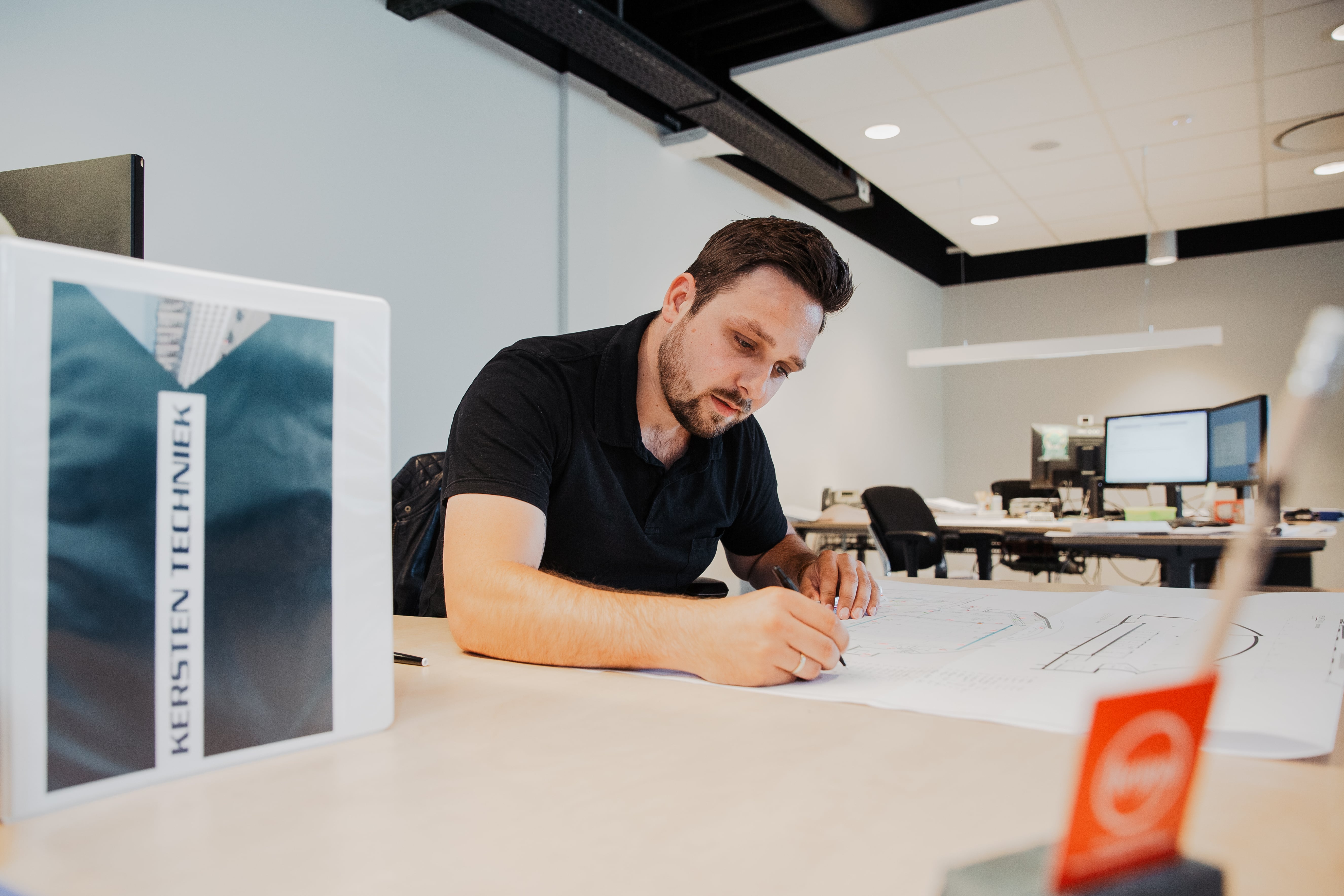 William doet de werkvoorbereiding voor het werk dat de monteurs van Kersten straks gaan uitvoeren. Dit is een heel traject, hij denkt dat het uitvoerende werk op zijn vroegst in 2024 zal plaatsvinden. “Waar ik nu mee bezig ben is een groot project in Friesland, in en om Leeuwarden. Daar worden meerdere ringen aangelegd voor een nieuw 20 kV net op een perceel waar duizenden nieuwe woningen komen. Bestaande stations moeten vervangen worden of we gaan stations bijplaatsen. Ik moet van alles uitzoeken, locaties bepalen, stations bestellen. Dit bestellen doen we nu al omdat er een behoorlijke levertijd op zit. En zodra locaties definitief bekend zijn gaan we daar een plan voor maken. Een derde partij regelt alle aanvragen bij de gemeente en daar werken wij ook mee samen.”